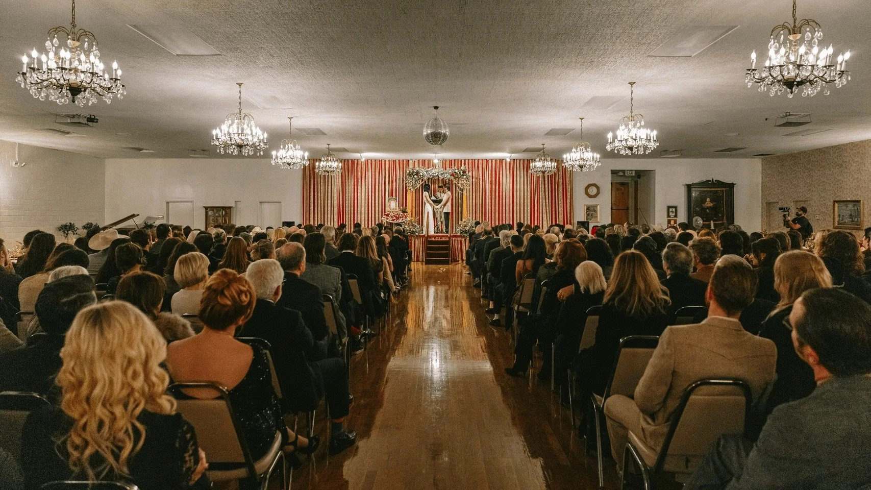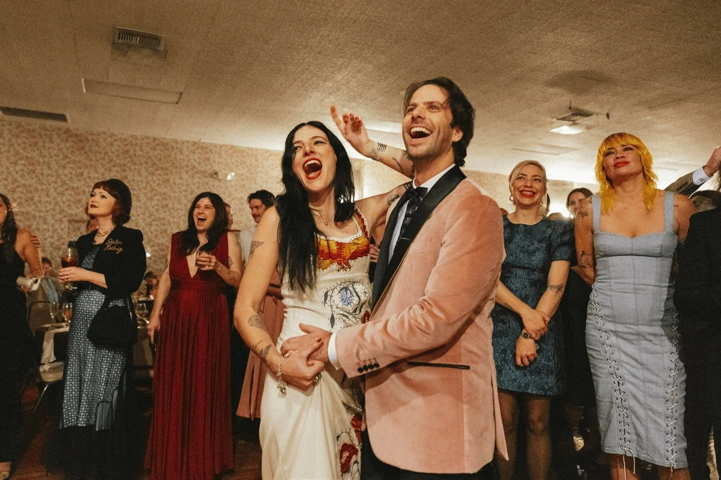Evan and Emily married in January 2025 at the Garibaldina Society, hosting more than three hundred friends and family for a night that felt equal parts wedding and hometown show. As LA natives and members of Emily Rose and the Rounders, they never planned on a traditional reception—so the moment the vows were done, the room shifted naturally into a full-scale performance. Friends from their musical community rotated on and off the stage, turning the evening into a loose, cool as hell celebration of the life they’ve built together.
